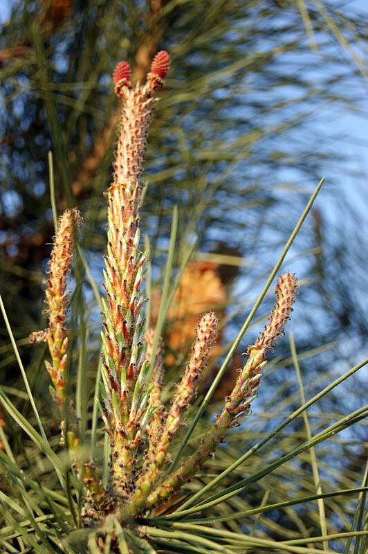Мужские шишки у сосны образуются в основаниях молодых побегов. Они желтые, мелкие и располагаются группами.